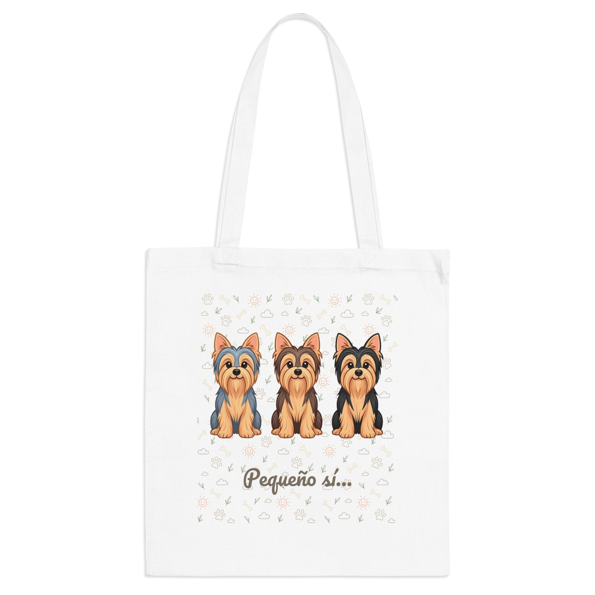 Con ilustraciones exclusivas de tres Yorkshire Terriers —blue and tan, chocolate y negro con fuego— esta tote celebra esa mezcla irresistible de elegancia, actitud y carisma que define a esta raza tan querida. En el reverso, los perritos aparecen vistos desde atrás, como si te acompañaran en cada paso... ¡con clase y pelazo incluido!