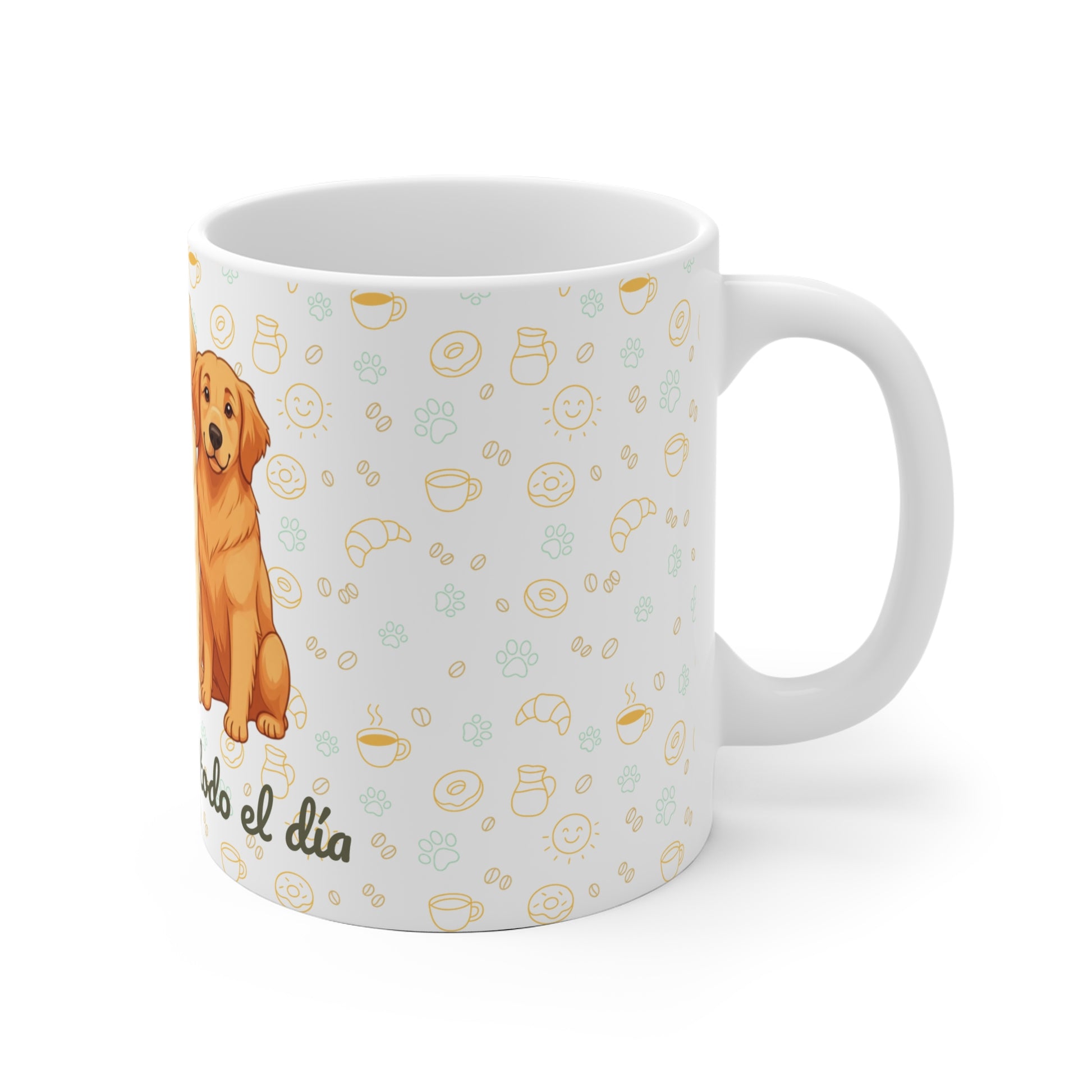 Taza de Cerámica con Golden Retriever – “Golden vibes, todo el día”